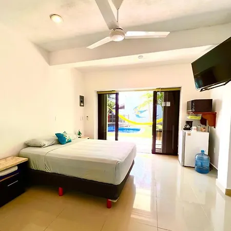 The apartment lies in the Puerto Juarez district, 3.2 km from Mercado 28.